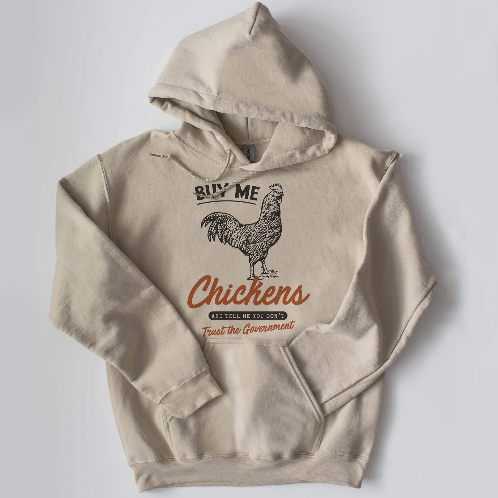 Get your hands on our Buy Me Chickens Crew sweatshirt and show the world you're not afraid to speak your mind. Perfect for sparking lively conversations, this top-selling t-shirt of 2024 is both fun and witty. Plus, it's a surefire way to let the government know they can't pull the wool over your eyes. (Insert chicken pun here)