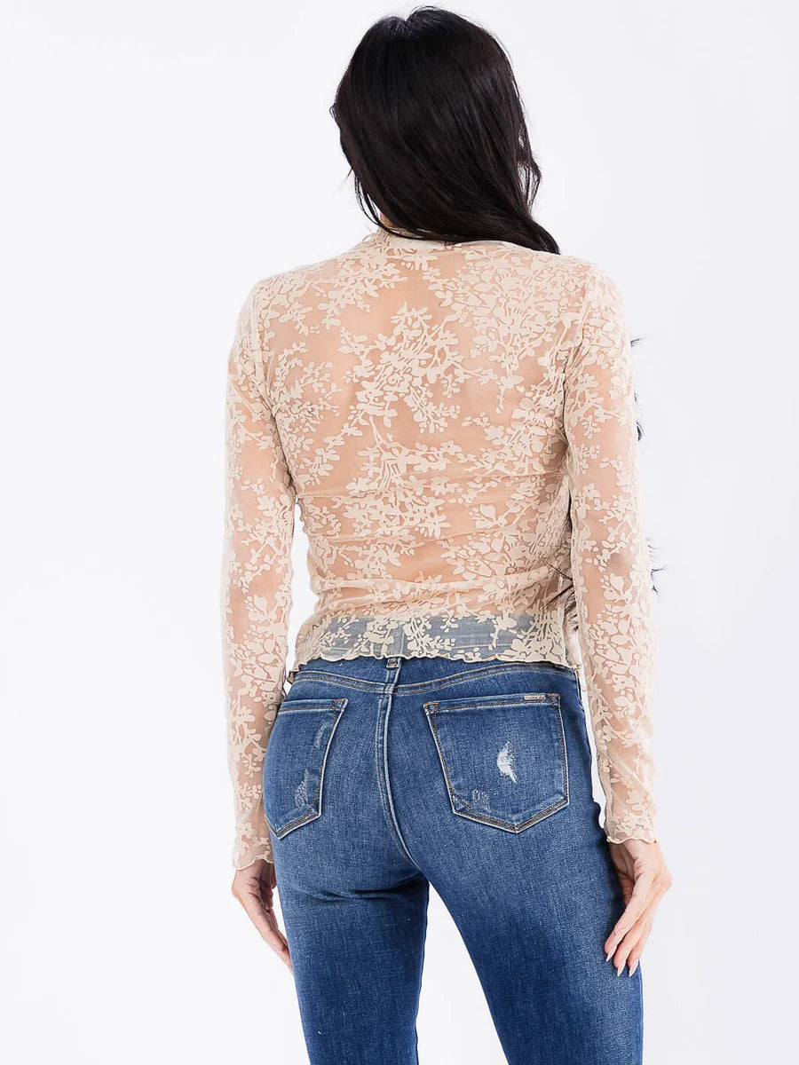 Embrace a flirty vibe with this Lace and Flowers Fall Mesh Shirt. Perfect for layering over your favorite tops or daring enough to wear solo, its delicate mesh adorned with charming floral lace adds a playful touch to any outfit. Light and breezy, it’s a fun way to celebrate the season with style and confidence.