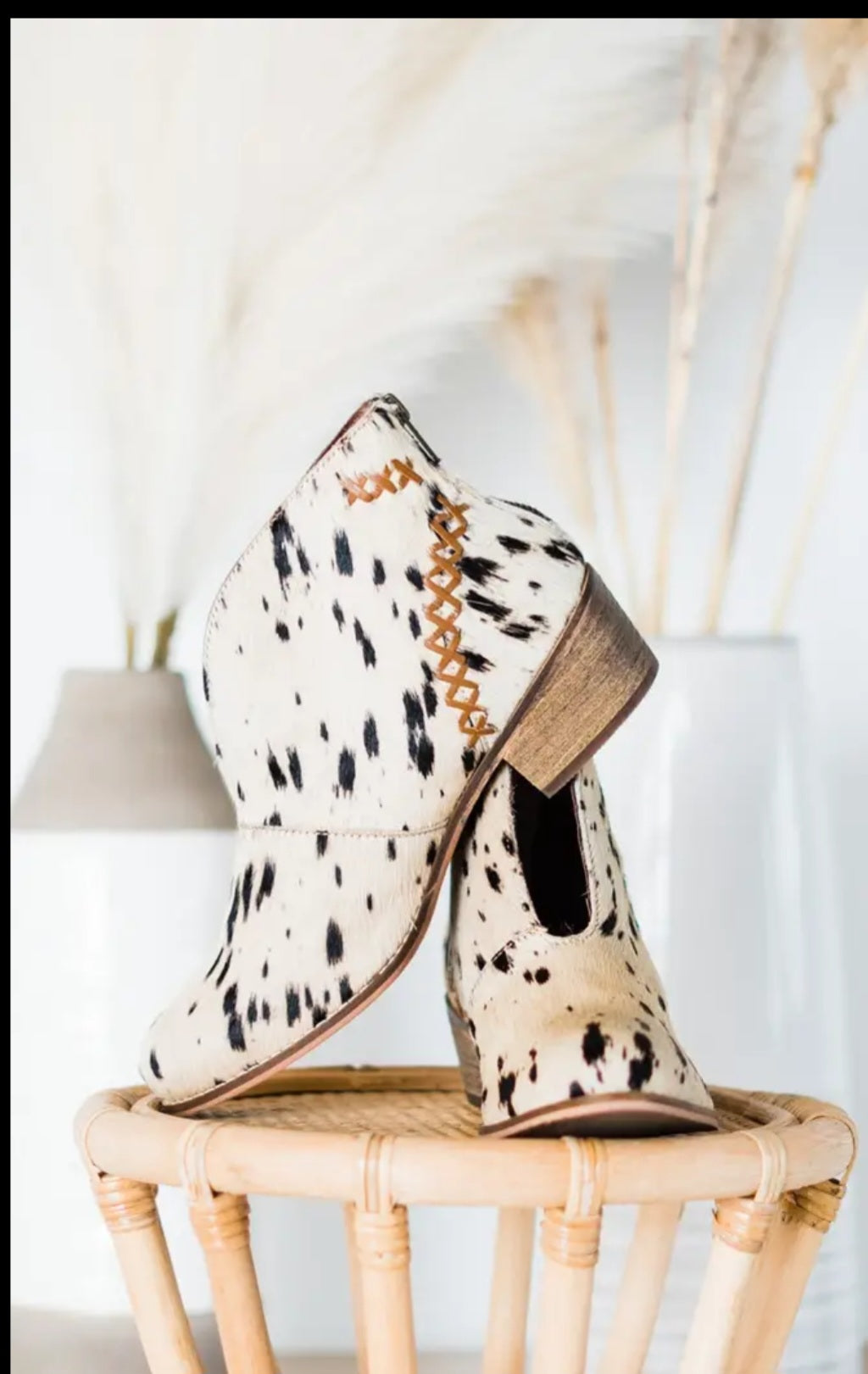 Get ready to stomp and strut at the NFR with these beautiful cowhide boots! The perfect addition to your outfit, these boots will complete your look and stand out in the crowd. Don't miss out on the opportunity to wow everyone at the rodeo with these stunning and stylish boots.