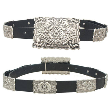 Western Concho Belt with Engraved Silver Buckle – FAUX Leather